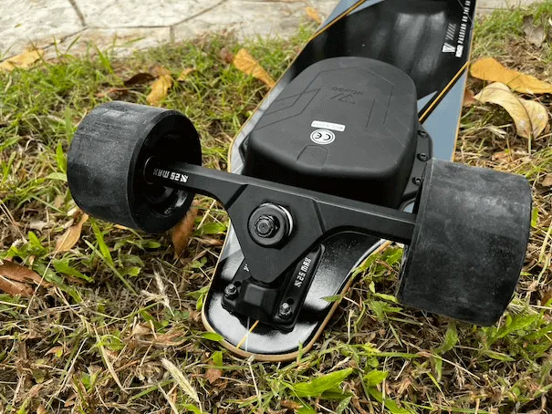 Ten longboard elektryczny 90mm ma trucki 50° o szerokości 7,5 cala, które dobrze łączą stabilność i przyjemność z jazdy. Carving jest płynny, a deska przewidywalna nawet przy dużych prędkościach.